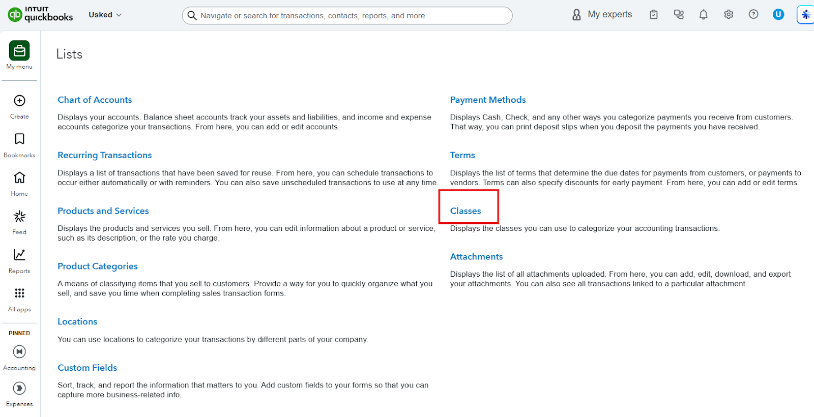 QuickBooks Online - Add Classes
