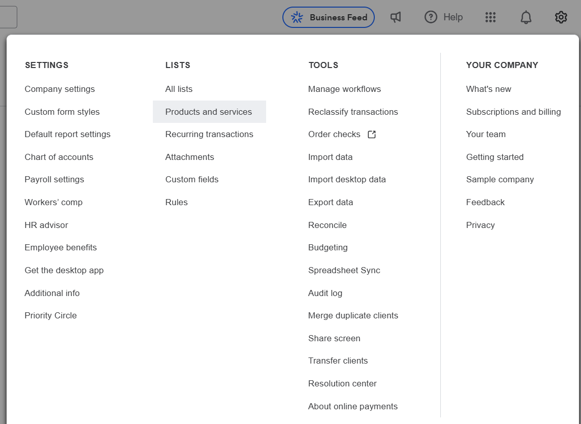 If all required Products and Services already exist in QuickBooks Online, you may skip this section.