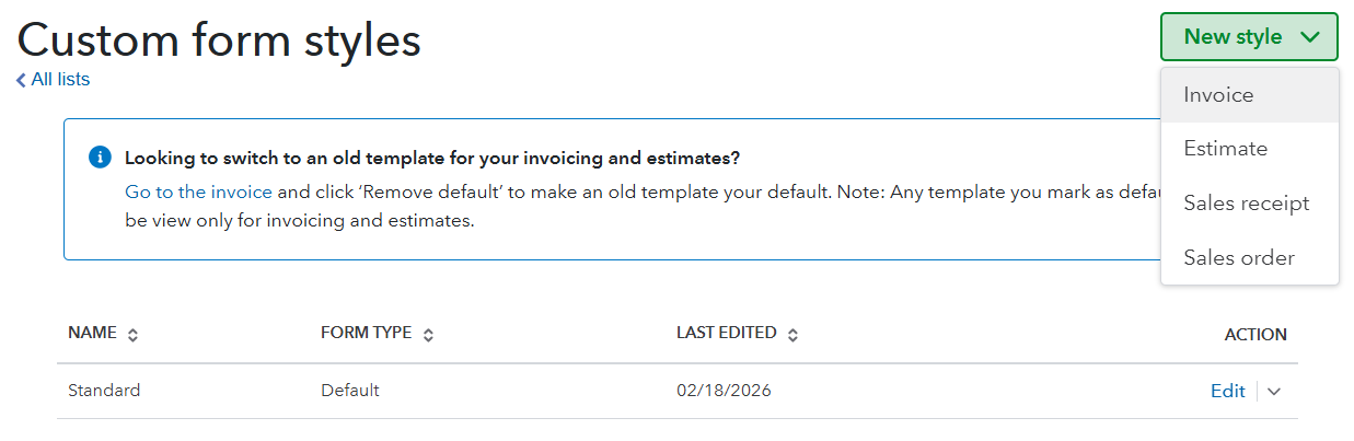 Click New style > Invoice.