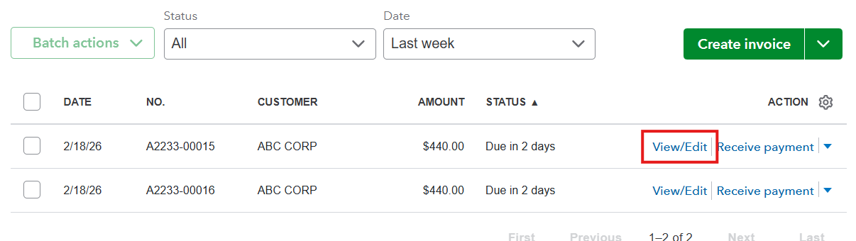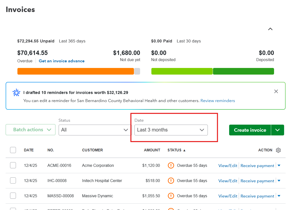 Review the batch of invoices.