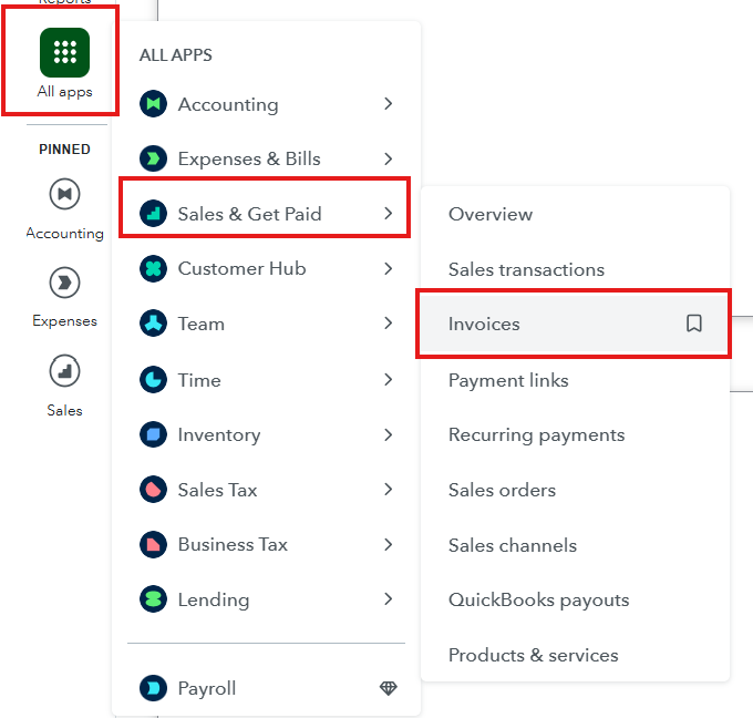 All apps →Sales & Get Paid → Invoices