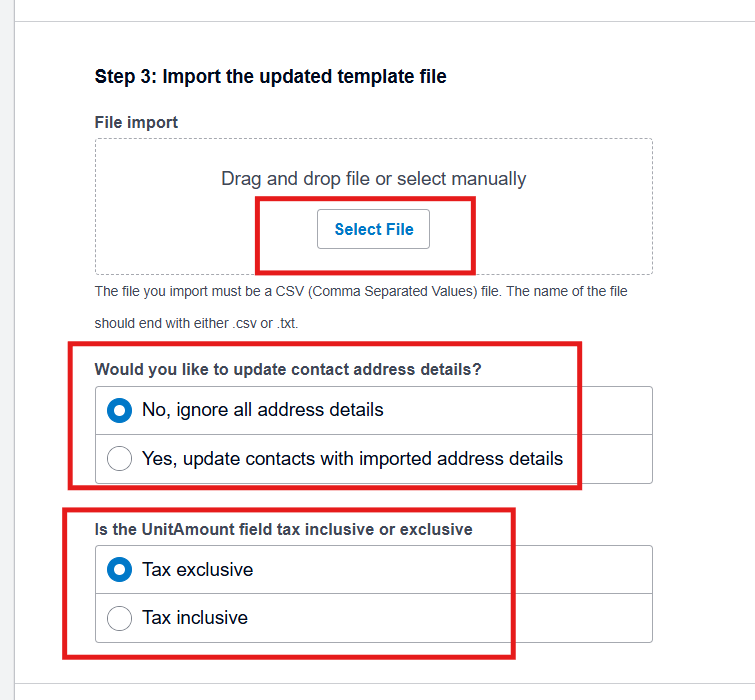 Choose your completed Xero template CSV file.